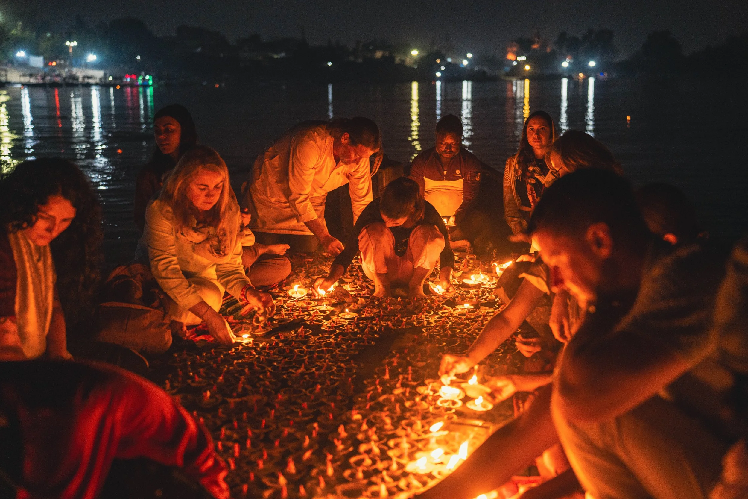16:30 Yamuna River Boat Trip & Evening Light Ceremony (Aarti) on the Yamuna River Bank